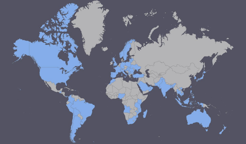 Приказ пријављених земаља за Глобални математички пројекат, 10.10.2017. Извор: http://bit.ly/2ib47vJ