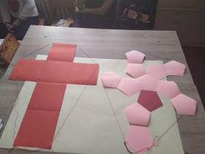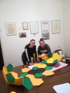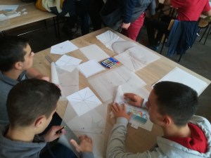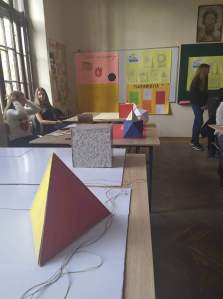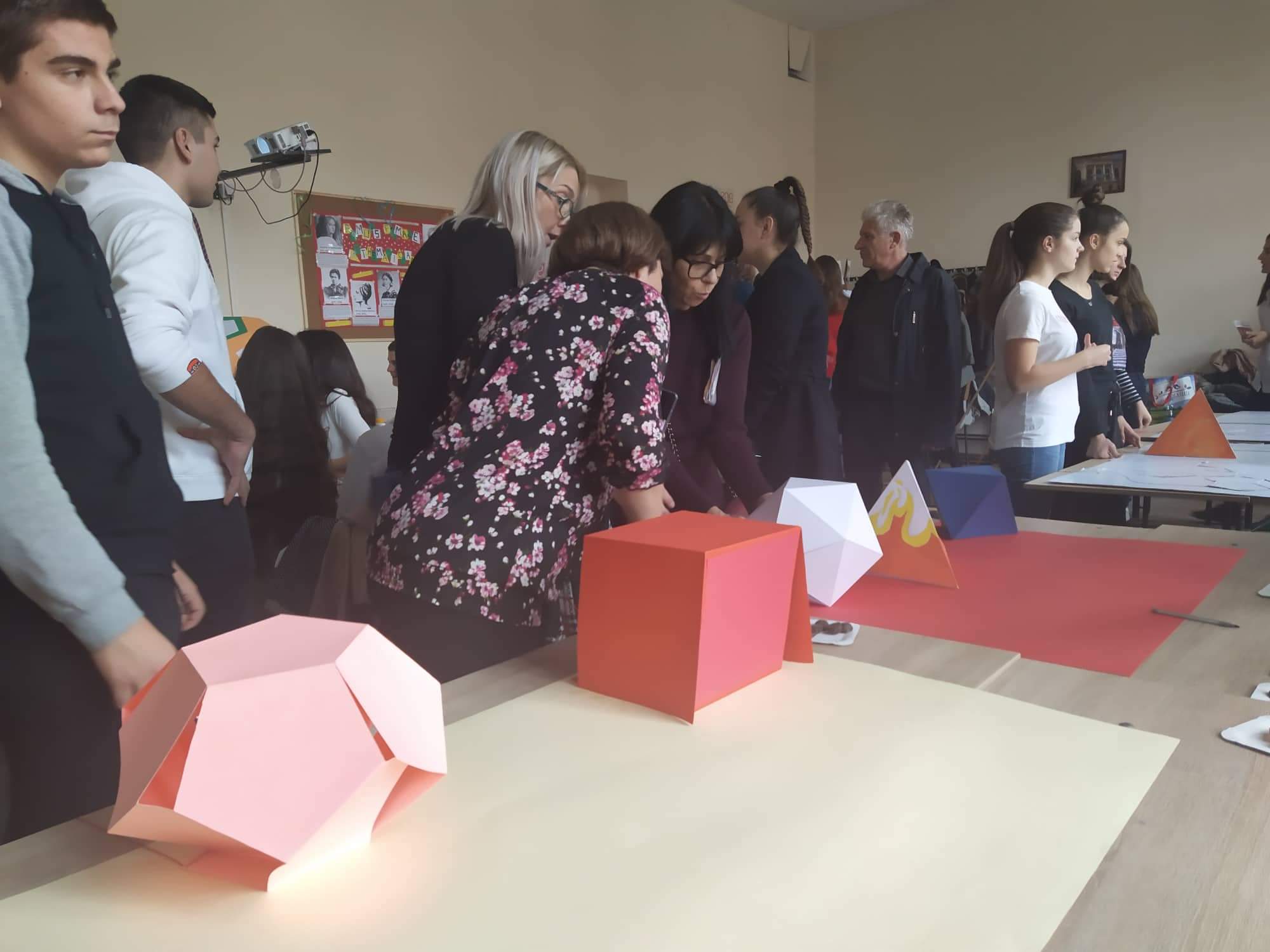 Колегиница Јелена Миливојевић је своје ученике ангажовала да у припремном периоду фестивалског 29.11.2019. праве моделе од картона, а потом и прикажу посетиоцима како да повлачењем нити, од мреже Платонових тела добију модела одговарајућег полиедра.