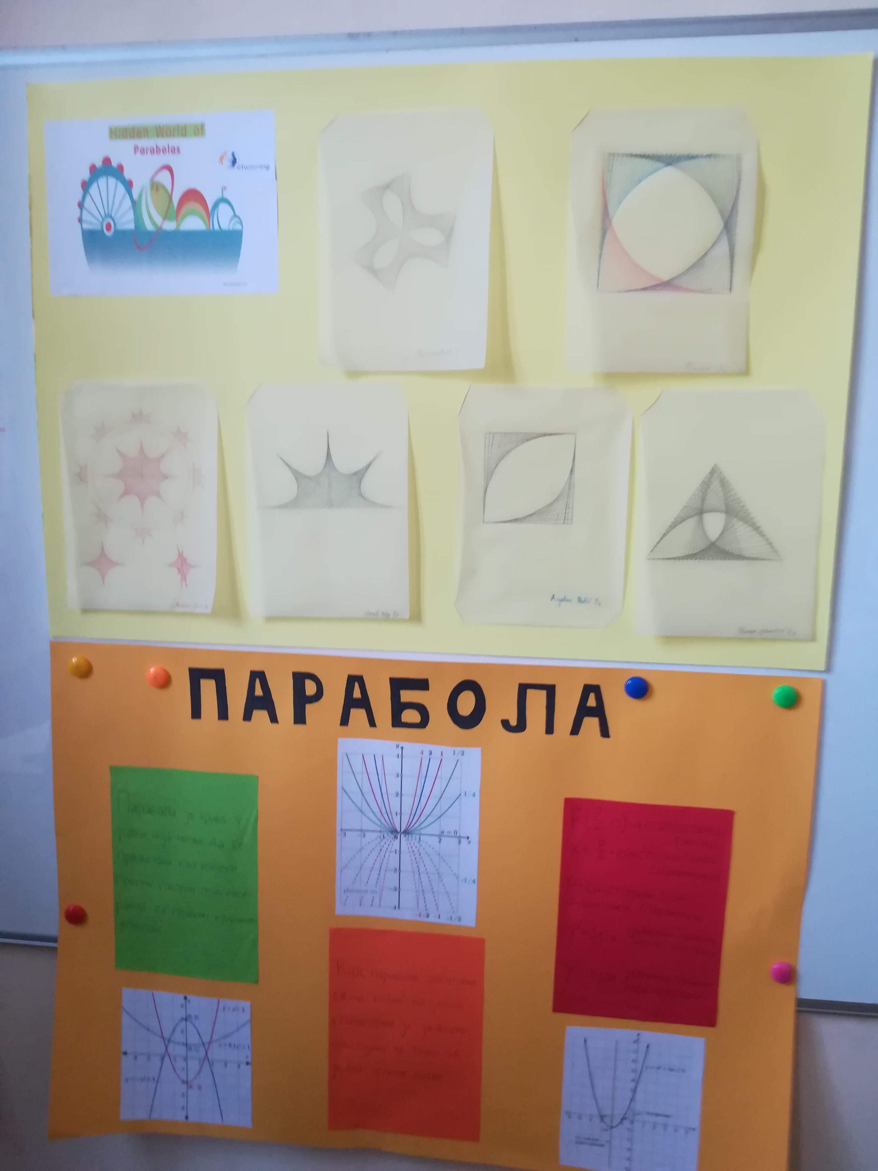 Ученици одељења II₇ и IVси, учесници еТвининг пројекта „Скривени свет парабола“, за ову прилику су припремили радионице „Art string“ и „Моја парабола на паус папиру“, а ученици Александар Јовичић, Немања Стојановић и Мартина Лукић су за посетиоце креирали интерактивни квиз о особинама парабола.