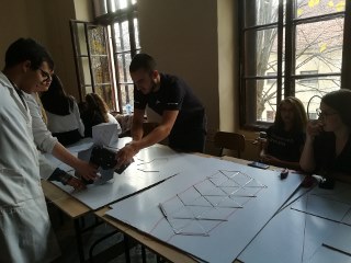 Колегиница Јелена Миливојевић је своје ученике ангажовала да у припремном периоду фестивалског 29.11.2019. праве моделе од картона, а потом и прикажу посетиоцима како да повлачењем нити, од мреже Платонових тела добију модела одговарајућег полиедра.